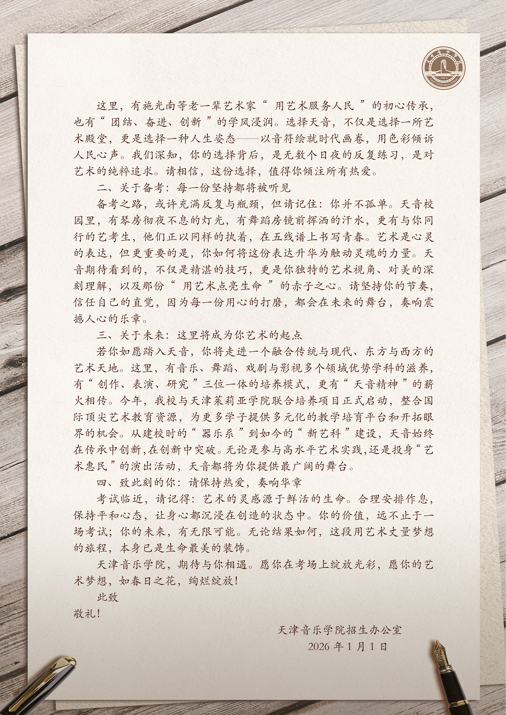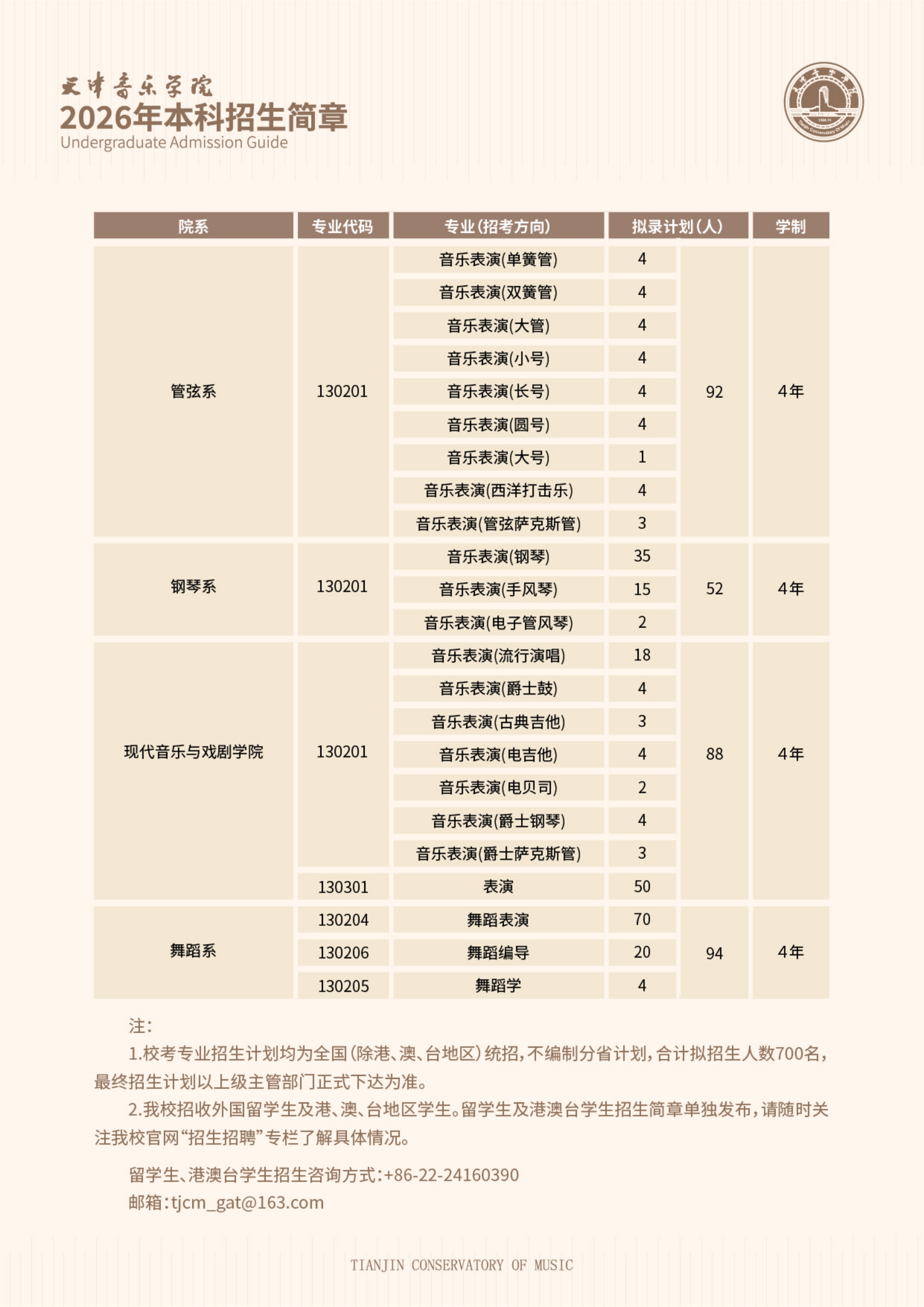 天津音乐学院2026年本科招生简章